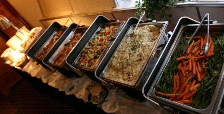 The buffet station is adjacent to the dining room for easier service