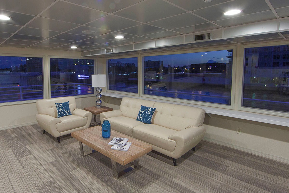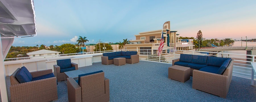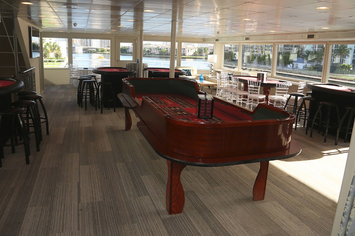 Large central bar, high-top tables, plush sofa seating, forward and rear open air balconies equal an oasis for VIP groups. 360* Views.