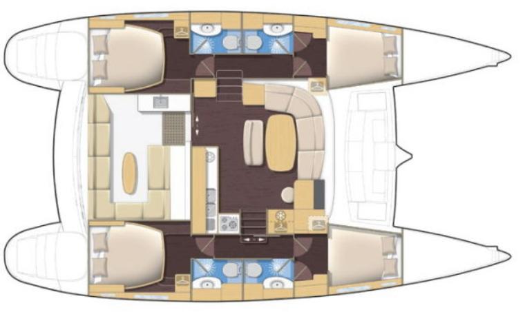 The layout above shows the four cabin, four head model or “Charter Version” 2005