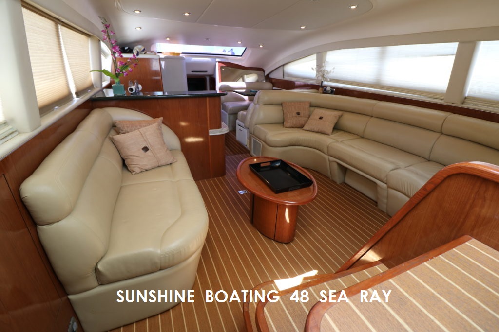 sunshine-boating-sea-ray-48-motor-aREAL BLEND OF INDOOR / OUTDOOR SPACEsunshine-boating-sea-ray-48-motor-bSUN PAD & EASY BOW ACCESSsunshine-boating-sea-ray-48-motor-cSPACIOUS INTERIOR SALONsunshine-boating-sea-ray-48-motor-fNICE DECOR LEVELsunshine-boating-sea-ray-48-motor-gAIR CONDITIONED COMFORTsunshine-boating-sea-ray-48-motor-e