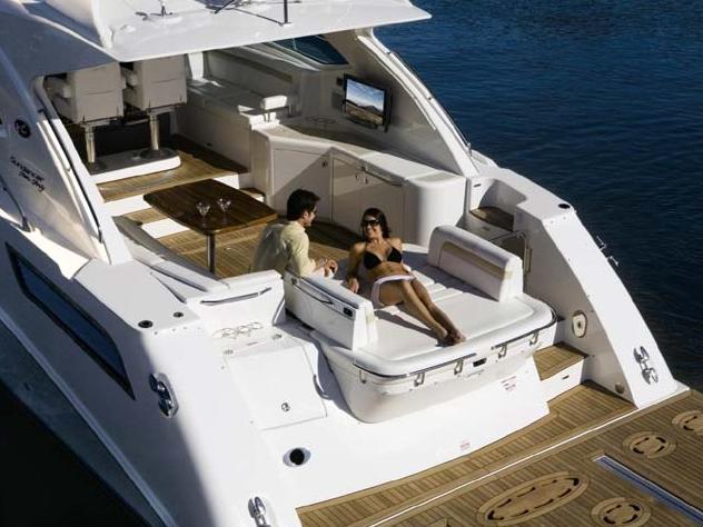 UPSCALE  INTERIOR  SALONsunshine-boating-54-sea-ray-x5 AFT  DECK  TRANSOM  SUN  PAD sunshine-boating-54-sea-ray-x7