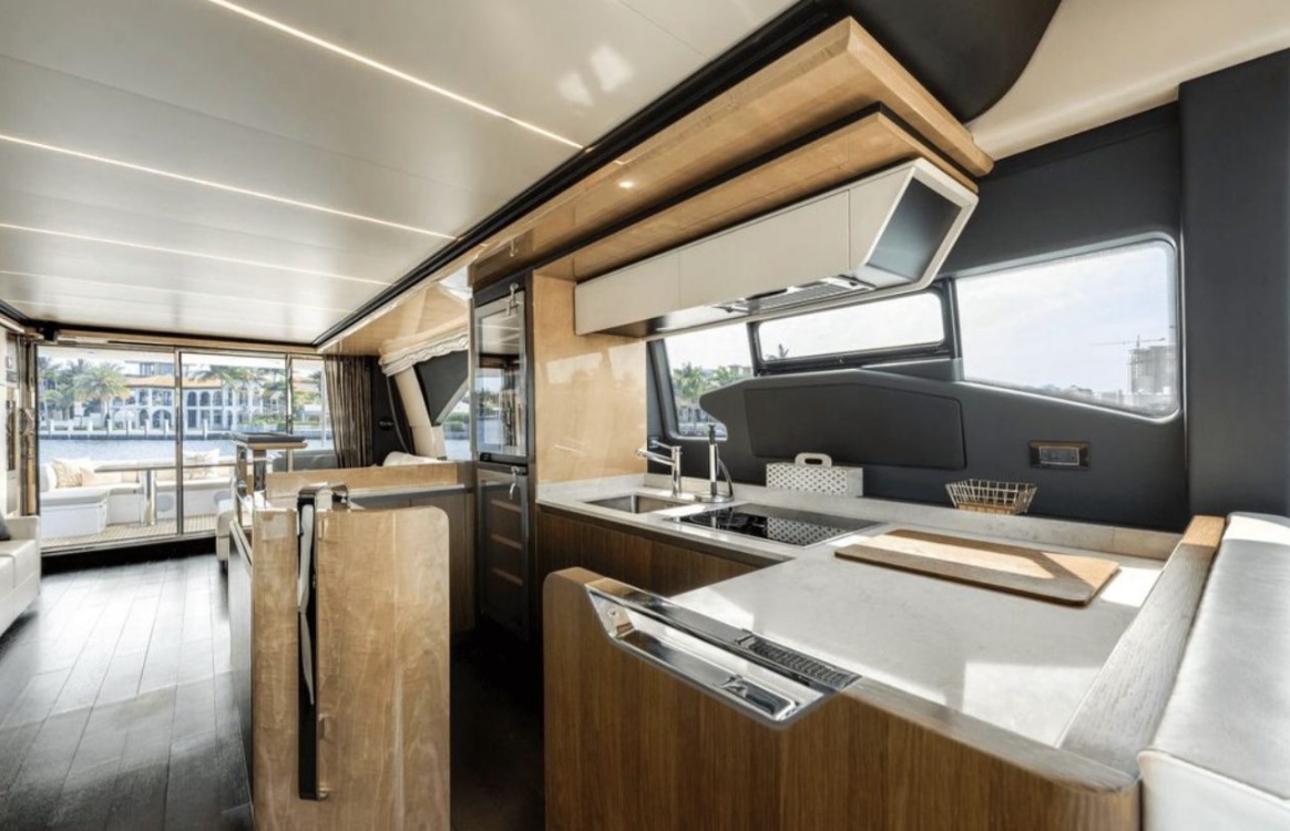 BASED IN THE FUN ZONE…RIGHT FROM THE START CLOSE TO THE ACTION = MORE TIME TO SWIM A HEFTY YACHT IS VERY STABLE SO MUCH DECK SPACE ON MULTIPLE LEVELS SHADED AFT DECK DINE IN COMFORT LOUNGE SPACE IS VERY CUSHY FLY BRIDGE IS MASSIVE SPRAWL OUT DINE ON THE FLY LARGEST FLY BRIDGE IN CLASS WET BAR RELAX IN THE SALON MODERN LOOK CHEF GALLEY MEAL PREP SPACE AZIMUT YACHTS ARE FASHION FORWARD EURO STYLE