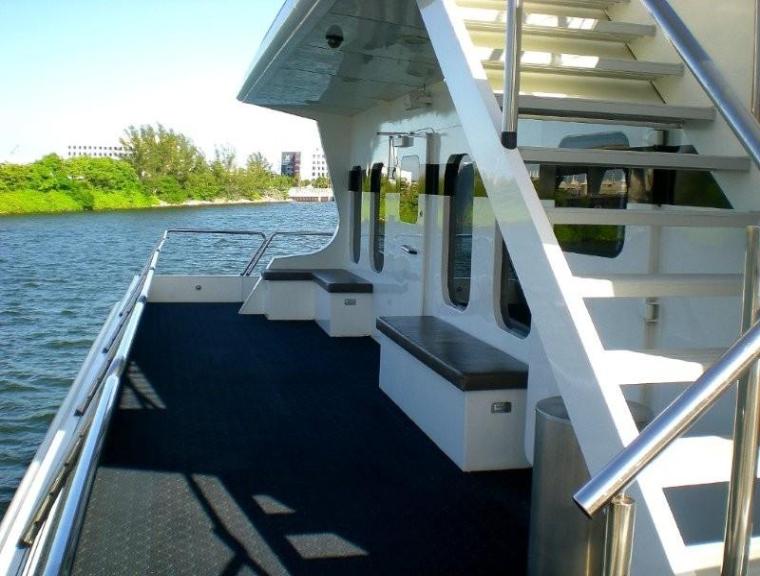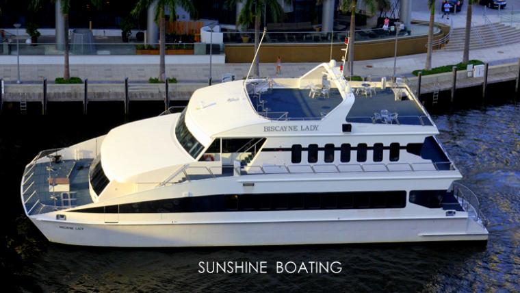 A KEY INGREDIENT TO SUCCESS IS HOW COMFORTABLE YOUR GUESTS ARE WHILE ON BOARD THE YACHT. THE ABILITY TO EASILY HANDLE THE FLOW OF A LARGE GROUP IS MET WITH THE BISCAYNE LADY BECAUSE THERE ARE THREE STAIRCASES CONNECTING THE THREE DECKS. DECK # 2 ALSO FEATURES A PERIMETER BALCONY PROVIDING OUTSTANDING VISTAS. DESIGNED AND CONSTRUCTED SOLELY FOR ENTERTAINMENT PURPOSES, THIS YACHT IS IDEAL FOR CORPORATE EVENTS, WEDDINGS AND MOST ESPECIALLY FOR BIRTHDAY OR ANNIVERSARY PARTIES. DESIGNER ELEMENTS SUCH AS ELONGATED PORTHOLE WINDOWS AND STAINLESS STEEL HANDRAILS PROVIDE A HANDSOME FINISH TOO. THE END RESULT IS A BEAUTIFUL FLOATING VENUE TO COMPLIMENT YOUR EVENT IN STYLE