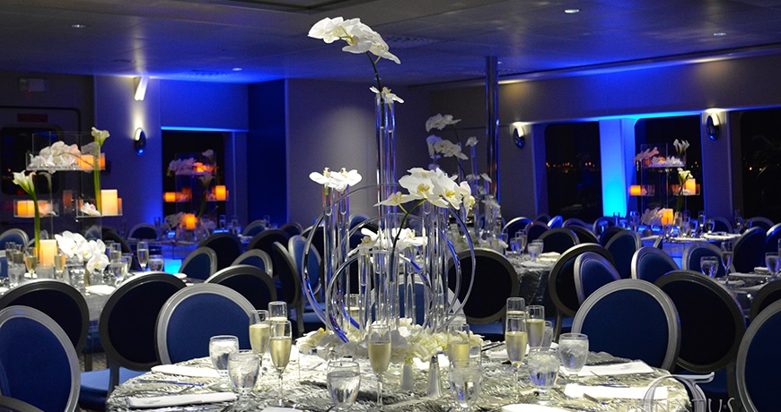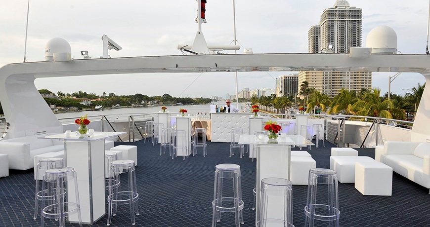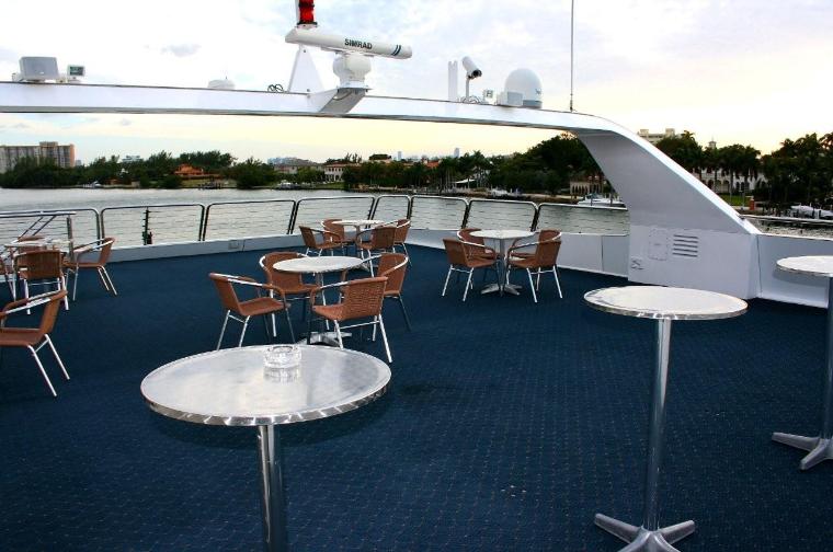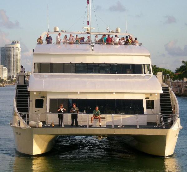 LOCATION: MIAMI, FL, SERVING SOUTH FLORIDA INCLUDING MIAMI, MIAMI BEACH, AND FORT LAUDERDALE. LAUNCHED IN 2004 IDEAL FOR UPSCALE GROUPS SEEKING THE FINEST YACHT AFLOAT (380 MAXIMUM). THREE LEVELS FOR ENTERTAINING. DECK ONE FEATURES A WONDERFUL RECEIVING AREA / BOW SPACE. INSIDE, THERE IS A SPACIOUS AND FLEXIBLE DINING ROOM, DANCE FLOOR, AND TWO BARS. THE CONTEMPORARY SECOND DECK LOUNGE HAS A DANCE FLOOR, TWIN FLAT PANEL TV’S, A CENTRALIZED BAR AND A PERIMETER OUTDOOR BALCONY. THE SKY-DECK / 3RD LEVEL IS WHERE MANY WILL SPEND TIME SOCIALIZING AND SIGHT-SEEING. KEY FEATURES INCLUDE: GREAT FLOW FROM DECK TO DECK, HIGH CEILINGS FOR FINER CLIMATE CONTROLS, SUPERB SERVICE LEVELS AND EXCELLENT CUISINE. ONE OF THE FINEST DINNER YACHTS IN THE U.S. PERFECT FOR CORPORATE AND SOCIAL GROUPS