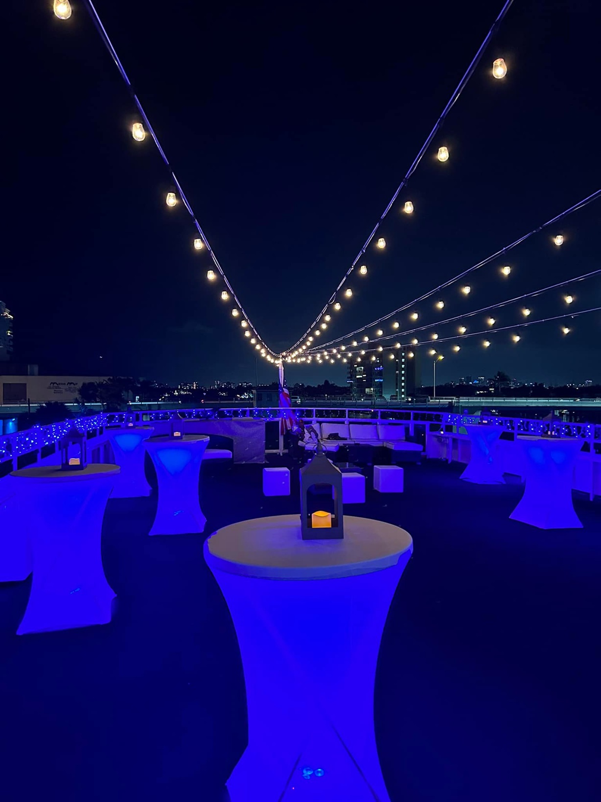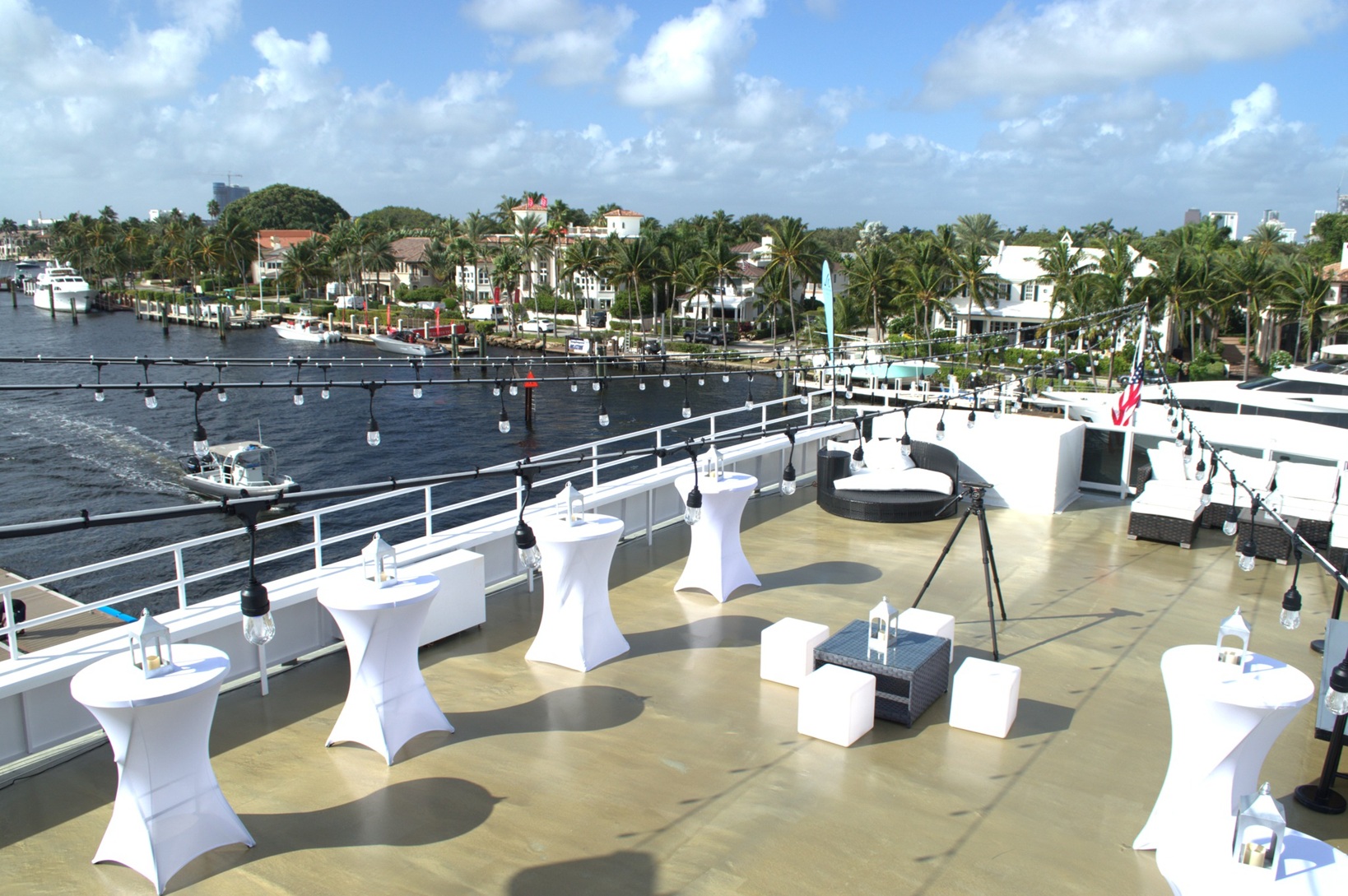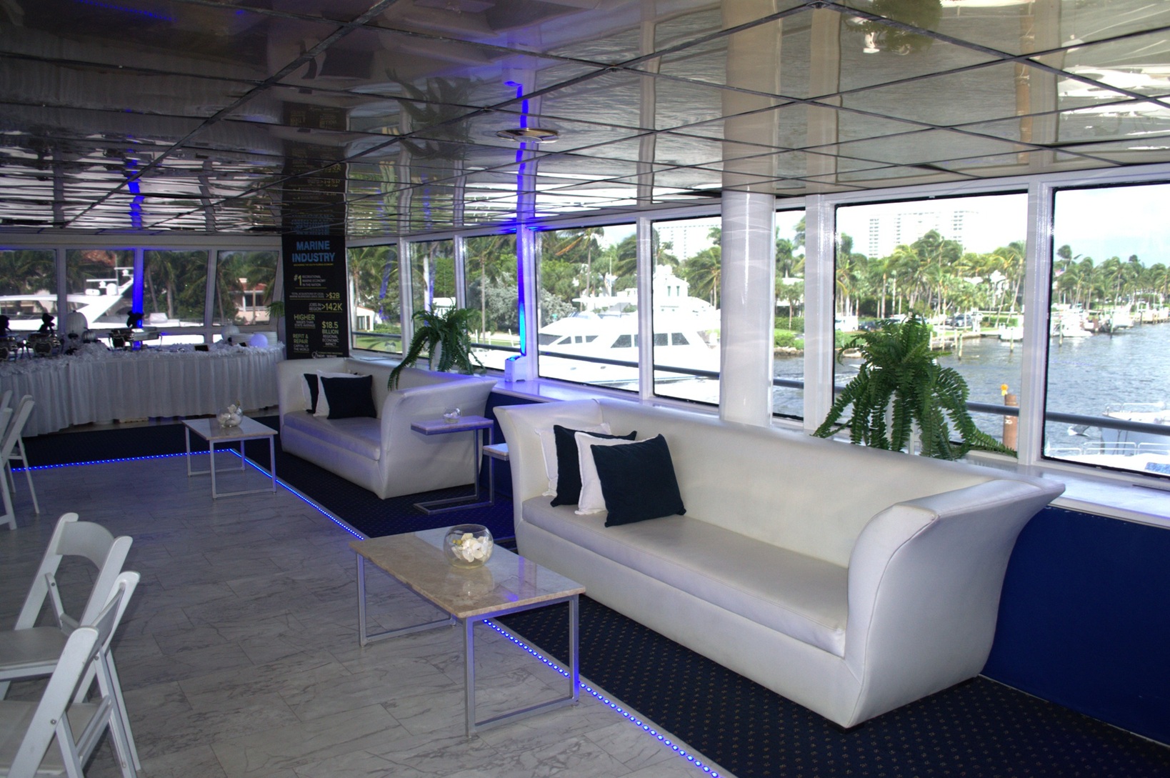 DECK ONE DECK ONE – LOUNGEDECK ONE LOUNGEDECK TWO DINING  WEDDINGS – A SPECIALTY DECK THREE LOUNGE / DANCE  South Beach Lady is a superb four-deck motor yacht ideal for corporate and social yacht parties for up to 350 passengers in Hollywood Florida DECK FOUR – SKY LOUNGE DECK FOUR – SKY LOUNGE – WEDDING DECK FOUR – OPTIONAL LIGHTING DECK BY DECK TOUR