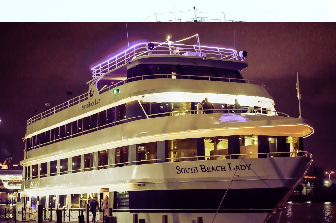 South Beach Lady is a superb four-deck motor yacht ideal for corporate and social yacht parties for up to 350 passengers in Hollywood Florida. Set sail on the South Beach Lady, a luxury mega-yacht designed for unforgettable experiences on the water. Accommodating 100 to 350 guests, this elegant vessel offers the perfect blend of sophistication and versatility, making it ideal for both intimate gatherings and large-scale celebrations. With four spacious decks, a full-service bar, expansive dance floors, a private bridal suite, and refined dining areas, every detail is crafted to elevate your event. From weddings and corporate functions to milestone celebrations, the South Beach Lady Yacht Charter offers an exclusive, first-class experience. Enjoy gourmet dining, top-tier entertainment, and breathtaking views of South Florida’s coastline, all while being pampered by an expert crew dedicated to making your event seamless and extraordinary.